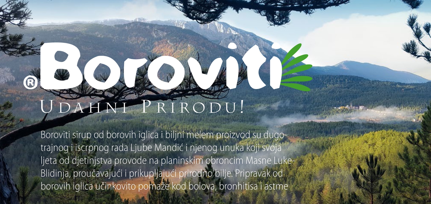 Boroviti sirup od borovih iglica i biljni melem proizvod su dugotrajnog i iscrpnog rada Ljube Mandić i njenog unuka koji svoja ljeta od djetinjstva provode na planinskim obroncim Masne Luke-Blidinja, proučavajući i prikupljajući prirodno bilje. Pripravak od borovih iglica učinkovito pomaže kod bolova, bronhitisa i astme.